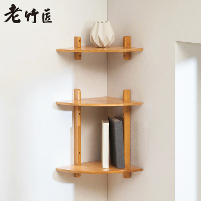 老竹匠 壁挂墙上置物架简易书架现代简约书房客厅实木墙壁转角楠竹隔板小书层柜装饰多层收纳搁板储物架阅读架