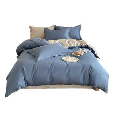 伊伊爱 50S全棉高精密纯色双拼四件套宾利蓝拼浅灰