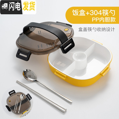 三维工匠高颜值分隔饭盒304不锈钢便当盒保温分格餐盒学生上班族筷勺餐具 黄色饭盒带筷勺套装(PP内胆)1200