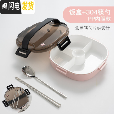 三维工匠高颜值分隔饭盒304不锈钢便当盒保温分格餐盒学生上班族筷勺餐具 粉色饭盒带筷勺套装(PP内胆)1200