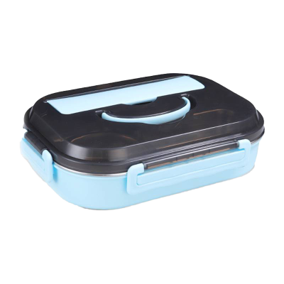 三维工匠高颜值分隔饭盒304不锈钢便当盒保温分格餐盒学生上班族筷勺餐具 蓝色饭盒带筷勺套装(PP内胆)1200