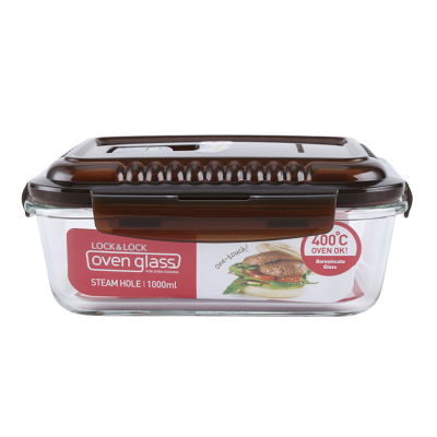 乐扣乐扣耐热玻璃保鲜盒出气孔便当盒饭盒餐盒长方形1L