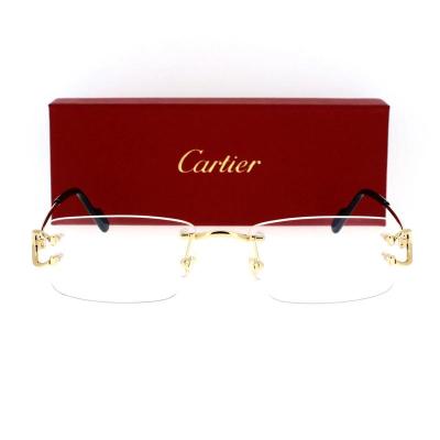 Cartier/卡地亚女款太阳眼镜金属矩形透明金框轻便舒适防滑镜腿