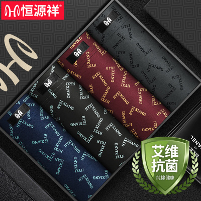 恒源祥男士内裤艾维植物纯棉中腰透气平角裤大裤衩子