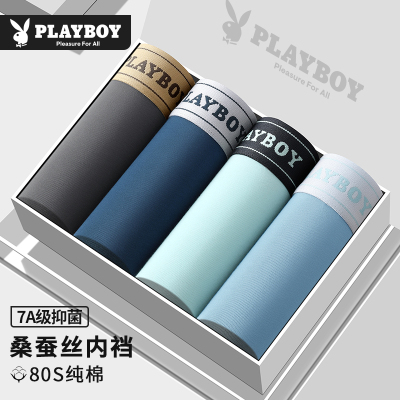 花花公子男士内裤男款纯棉四角短裤男式全棉抗菌青少年平角裤男生