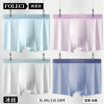 夏季冰丝男士内裤中腰无痕透气速干四角短裤青年大码宽松平角裤头