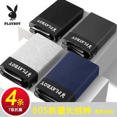 花花公子男士内裤纯棉抗菌四角裤青少年男生平角裤运动短裤头男款