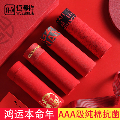 恒源祥本命年男士内裤红色纯棉鸿运礼物属龙年平角结婚男生四角裤