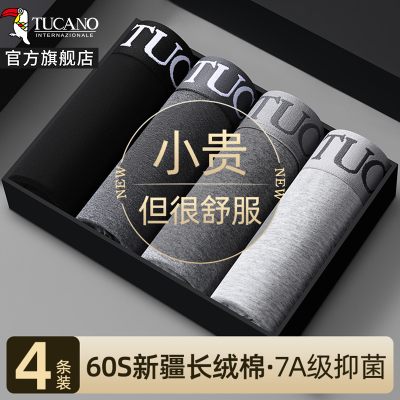 盒装4条纯棉男士内裤 男士50支纯棉无痕平角裤 7A男士四角裤