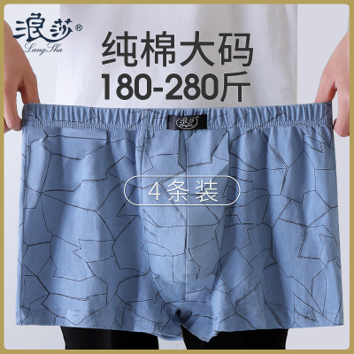 浪莎男士内裤男平角纯棉大码胖子肥佬200斤加肥加大宽松四角短裤