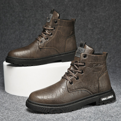 秋冬新款皮面复古时尚户外工作休闲高帮靴日常潮搭运动马丁靴男靴