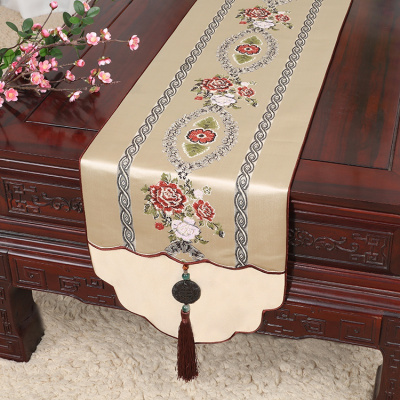 新中式古典玉桌旗茶几长条布艺中国风桌布床柜旗电视柜盖布 如意 34*300适合桌长240-250CM