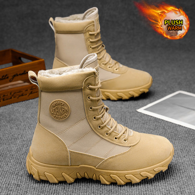 冬季新款加绒保暖马丁靴男高帮复古工装靴户外防滑耐磨战狼靴