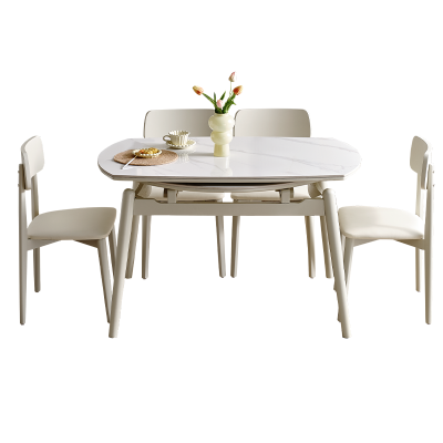 全友家居奶油风可伸缩圆桌客厅岩板餐桌椅组合2024新款
