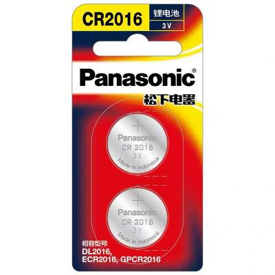 松下Panasonic 进口纽扣电池精装版CR2016/2BC 汽车钥匙遥控器电子秤计算器计步器电子手表2粒装3V