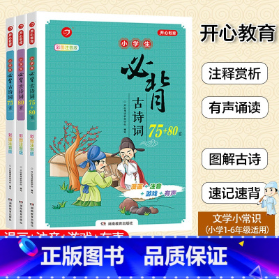 必背古诗词75首(小开本) 小学通用 [正版]开心教育 小学生必背古诗词75+80首(小开本)彩图注音注释译文一1二2年