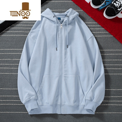 YANXU卫衣男薄款运动青少年蓝色大码拉链休闲带帽开衫连帽外套