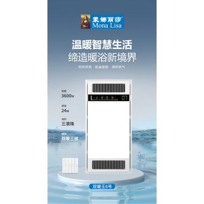 蒙娜丽莎 智能电器 浴霸(双暖王6号 )集成吊顶式风暖卫生间家用取暖五合一嵌入式浴室暖风
