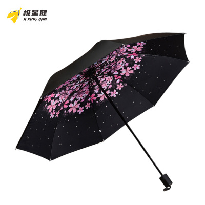 天堂伞 碳纤黑胶朝里转印三折太阳伞晴雨伞1283