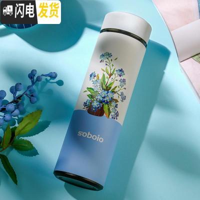 三维工匠保温杯男学生创意潮流ins韩版泡茶简约瓶不锈钢水杯子定制女 勿忘我