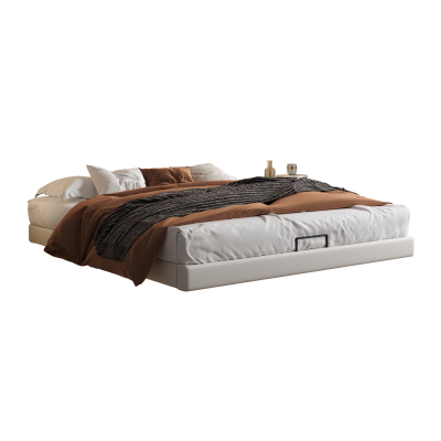 梵宜 意式悬浮床极简风奶油风轻奢带感应灯主卧床科技绒双人床