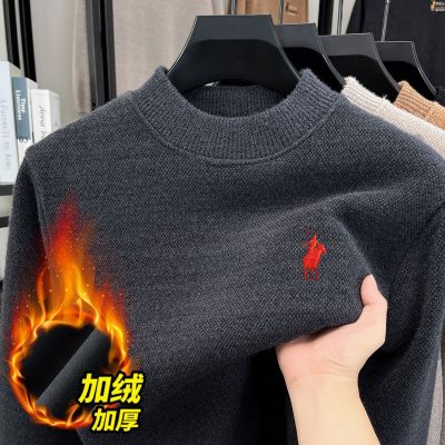 加绒男士毛衣2025冬季新款时尚半高领加厚保暖针织打底衫男