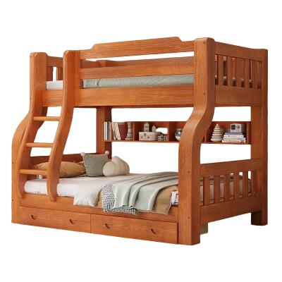 伊科飞特实木双层床2000*1200*1600mm+抽屉+书架+床垫套