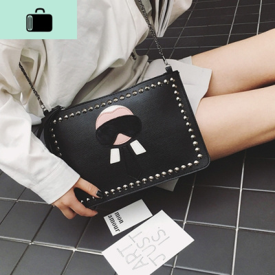 2020新款女包老佛爷手拿包铆钉手包信封包大容量手抓包单肩斜挎包NEW LAKE 黑色女手包