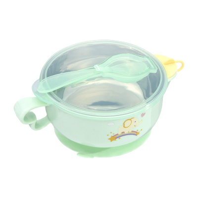 开优米(Kiuimi)儿童不锈钢餐具宝宝注水保温碗吸盘碗带勺子带吸盘辅食碗婴童碗冬季 绿色3件套
