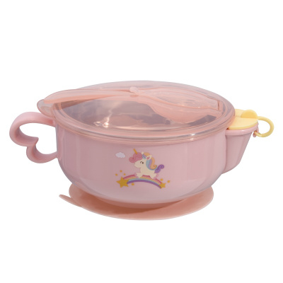 开优米(Kiuimi)儿童不锈钢餐具宝宝注水保温碗吸盘碗带勺子带吸盘辅食碗婴童碗冬季 粉色3件套