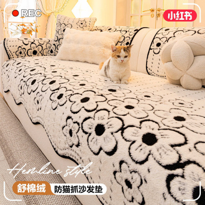 加厚毛绒沙发垫新款冬季舒棉绒坐垫套罩直排防猫抓皮沙发盖布