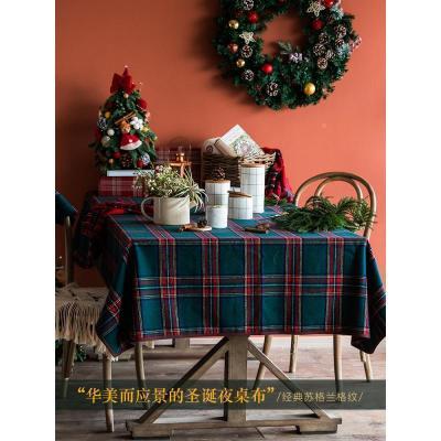 美帮汇驯鹿桌布北欧红格子餐桌茶几节日圆桌布台布长方形定制