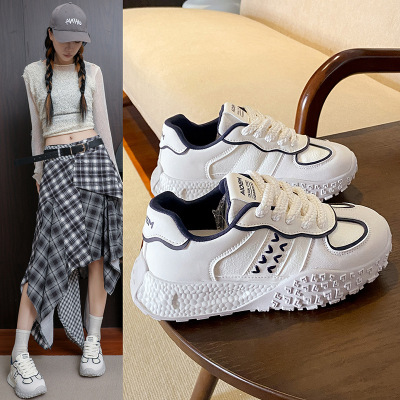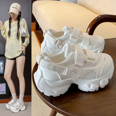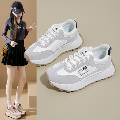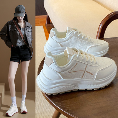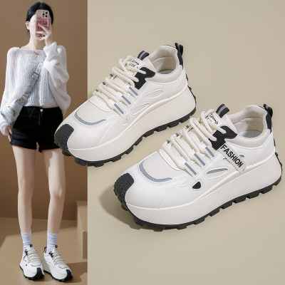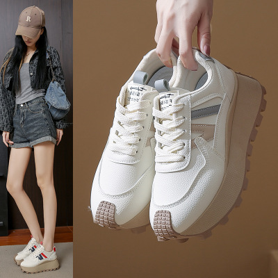 SUNTEK松糕鞋厚底女款2023新款夏季小白鞋女内增高鞋子韩版潮流百搭小众