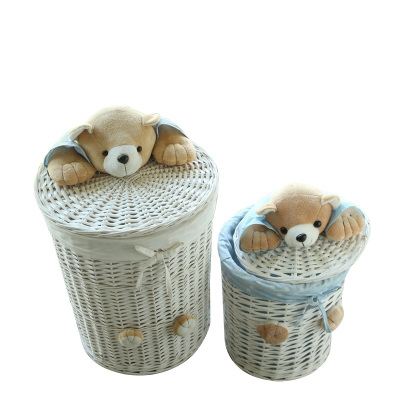 藤编脏衣篮玩具收纳箱家用脏衣服篓放衣服的收纳筐编织带盖子大号