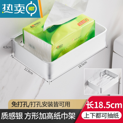 敬平纸巾架盒卫生间免打孔浴室创意壁挂式卷纸架厕所收纳厕纸置物挂架 [质感银/特长款]方形加高纸巾架纸巾盒