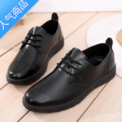 SUNTEK肯德基客麦当劳工作鞋男黑色餐厅上班平底皮鞋男防滑软底单鞋