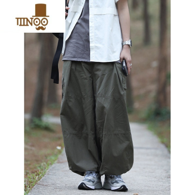YANXU夏季新款日系复古抽绳束脚阔腿工装裤男女款潮牌宽松多袋休闲长裤