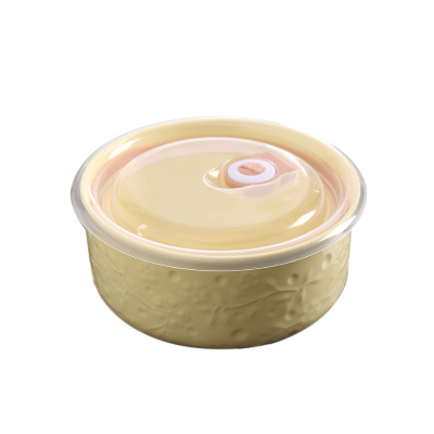 顺祥缤纷保鲜碗850mL(一抹金艳)釉下彩密封保鲜碗带盖泡面碗陶瓷碗家用骨瓷泡面餐具专用微波炉饭盒套装 苏宁自营