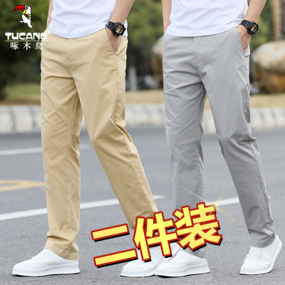 啄木鸟男士休闲裤宽松直筒纯棉夏季薄款裤子男新款大码商务西裤