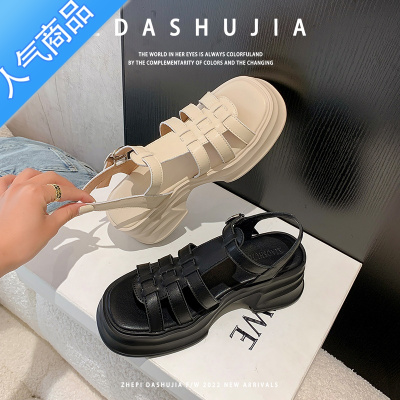 SUNTEKchic~巨好看 !厚底粗跟凉鞋女2023新款夏季高跟防水台罗马鞋