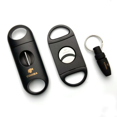 雪茄剪3件套便携雪茄刀雪茄V型剪刀圆形打孔器雪茄钳