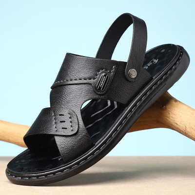 凉鞋男真皮夏季拖鞋新款头层牛皮男士休闲沙滩鞋爸爸鞋子