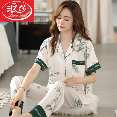 浪莎冰丝睡衣女2024年新款夏季薄款短袖高级感家居服套装