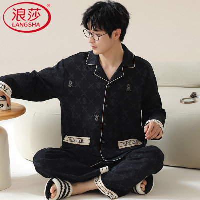 浪莎2025新款男士睡衣春秋款纯棉长袖春夏天男生全棉家居服套装