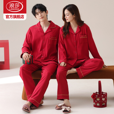 浪莎红色睡衣春秋2025新款结婚情侣套装纯棉长袖新婚喜庆家居服HJ