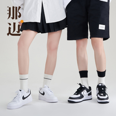 那边袜子女士夏季黑白条纹中筒袜情侣袜长袜男士棉袜学生学院风0930