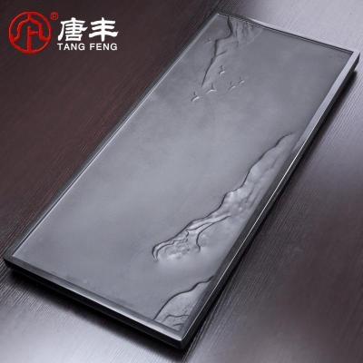三维工匠天然整块乌金石茶盘家用简约火烧石头材茶台茶海功夫茶具托盘 60*40*3cm