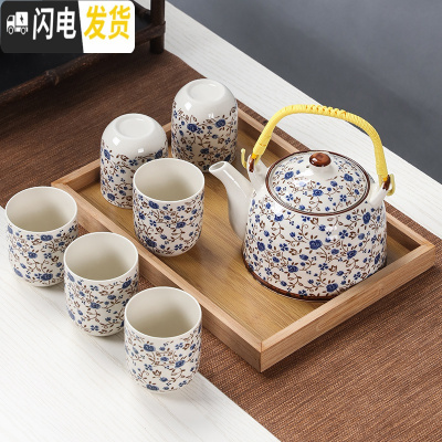 三维工匠景德镇陶瓷家用中式青花整套功夫茶具套装凉水提梁泡茶壶茶杯茶盘 茶具套装花开1.8提梁壶款(带PC茶盘) 8件