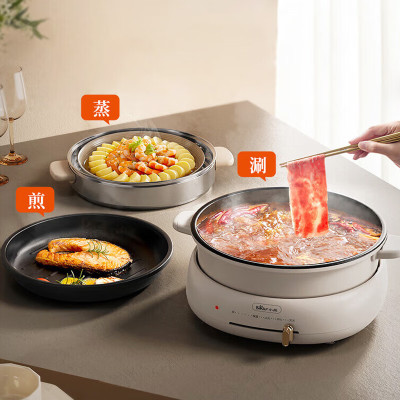 小熊(Bear)电火锅专用锅电炒锅电煮锅多功锅家用分体式焖锅煎锅 多用途锅大容量大功率涮烤火锅可拆锅电热锅