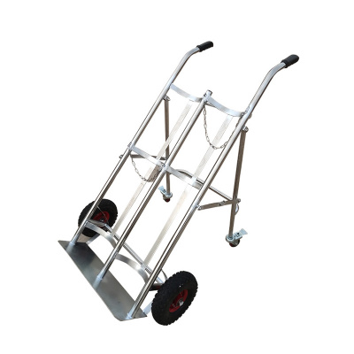 臻远ZY-C14气瓶车不锈钢手推车氧气乙炔瓶手推车 304不锈钢双瓶带支架